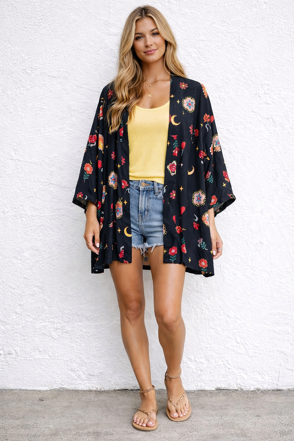 Para quem ama estampas místicas, o quimono místico tem leveza e exclusividade. Confecionado em viscose, tem modelagem ampla e fica perfeito para complementar looks básicos.