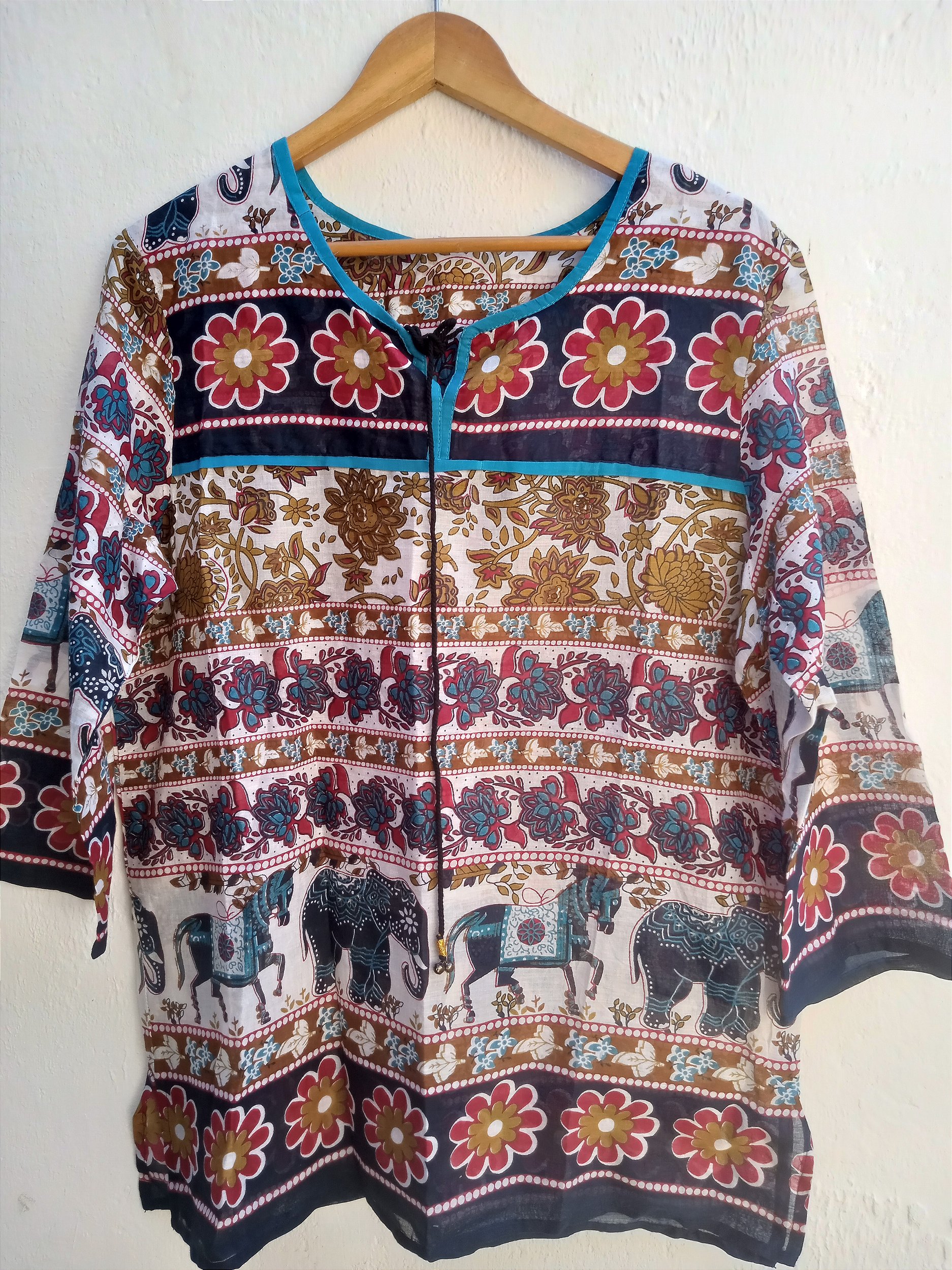 Modelo emn algodão com manga 3/4 ideal para compor looks hippiew. Peça com transparência.