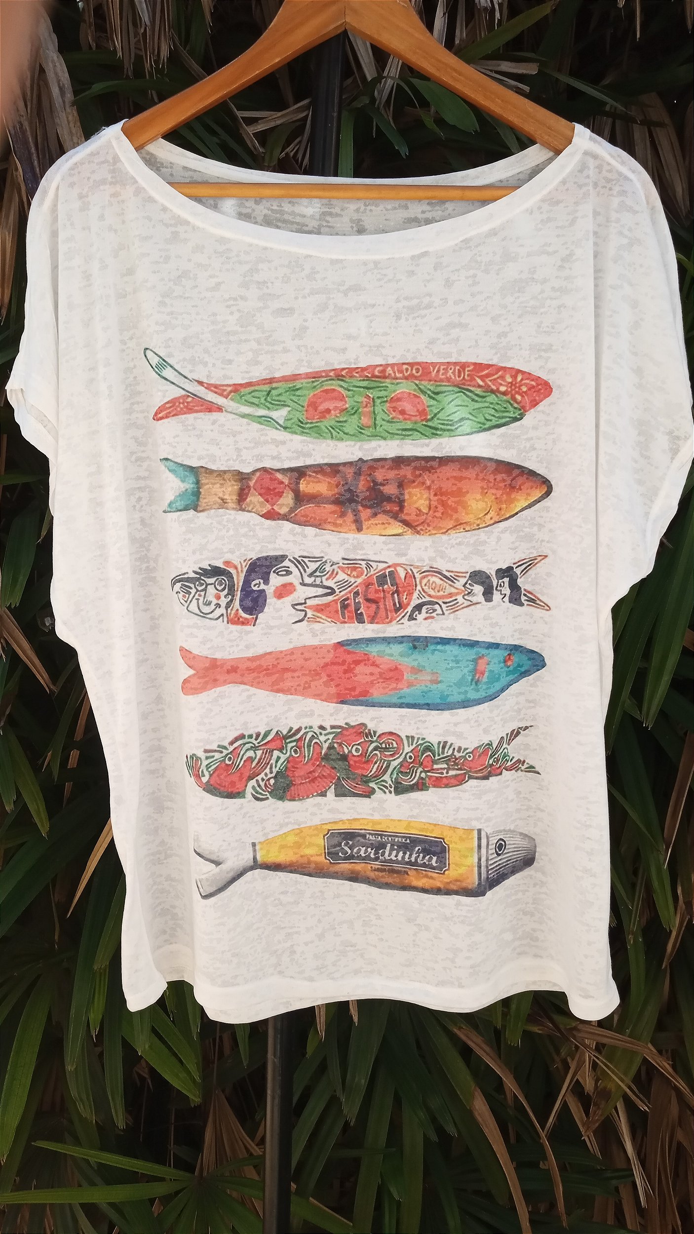 T-Shirts camiseta feminina mística sardinha peixe crustáceo devore hippie