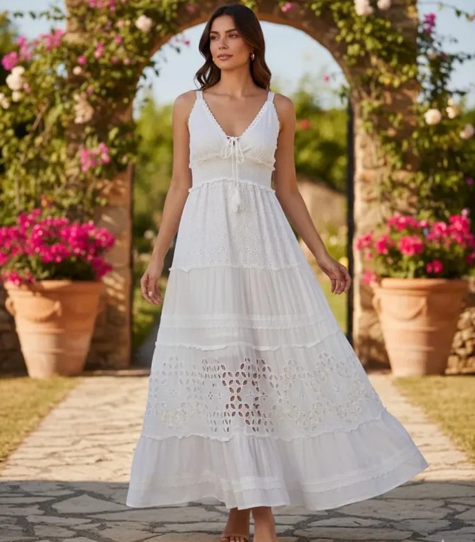 Vestido longo algodão laise boho chic alice