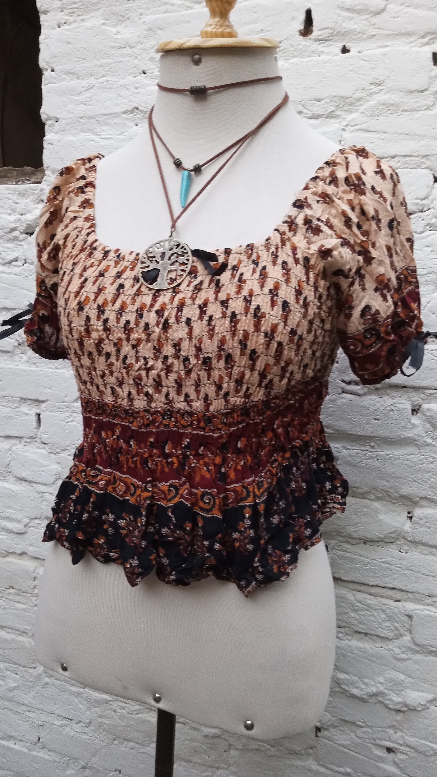 Modelo em algodão com lástex em toda a extensão e manda bufante, pode ser usado como ciganinha.